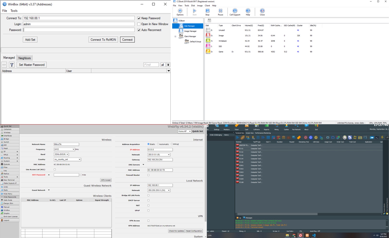 This is our computer cafe we print here and the applications we use to manage it is Pancafe, CCboot and Mikrotik
